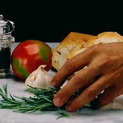slices of bread, salt a little bit, grind a lot of pepper and dress with