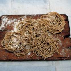 • Impasto a mano con farina di grano duro, acqua, uova (una per ogni mezzo chilo di farina) e sale