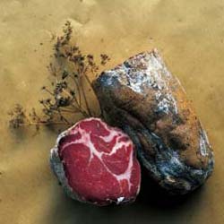 È una pancetta di maiale salata e aromatizzata al finocchio selvatico; le pezzature si aggirano sui 3 kg.