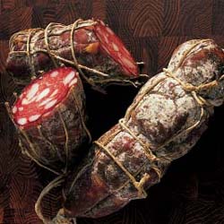 È un tipico salame toscano a grana fine, con lardelli più