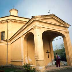 From the Taverne d'Arbia roundabout, looking towards the bridge over the river Arbia, you can see to the left a small surfaced road (for Presciano), along which there are the red and white markers of footpath no. 2. Take this road, which runs beneath the Siena-Bettolle link road and immediately afterwards curve left on a rough unpaved track (red and white signs). Walk up the track, passing several country farmhouses, till you come to a group of rural buildings called Piancollina. Here there's a track going to the right along the ridge in the direction of Mociano. Soon afterwards this track widens and is flanked by cypresses, and leads to the villa and the small, interesting chapel of Mociano. Sticking to the main path, carry on along the ridge of the cultivated hills which lie to the east of Siena until you get to the surfaced Pieve a Bozzone road. Turn right along this quiet road and follow it until you reach a main junction.