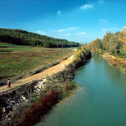 Go straight on in the direction of Vico d'Arbia and Montaperti, walking along the unpaved road. Soon you come to a sign for Vico d'Arbia: ignore it, descend instead to a bridge over the river Arbia, and then climb again, crossing through a small wooded area till you reach a crossroads. Cross the asphalt road and carry on the other side along the unpaved road that leads to Montaperti (there's a sign). A short distance further on you come to a junction. If you go straight on, you come immediately to the small rural village of Montaperti, where there's also a church. The path, however, goes right, and takes you down to the plain below Montaperti, in the direction of the hill of Monteapertaccio, which immediately appears to the left with its tall green cypresses. You can't go wrong here, just carry on along the straight, ancient cart-track which then curves to the left at Monteapertaccio and goes through the village. Immediately afterwards, having passed a large group of farm buildings, you come to a junction. Go left, leaving the main cart-track and continuing till you're at the foot of the hill; you reach the top by walking up a narrow path. At the top there's a pyramidal monument to mark the battleground and a great view of the succession of hills that make up the Chianti Senesi area to the north and the Crete Senesi to the south. Climb back down the hill and go back the way you came till you get to the junction for Taverne d'Arbia. Turn left and go through the hamlet (the most typical feature of rural farm buildings in the Siena hills is their colour, a very distinct red which derives from the principal building material, terracotta bricks produced above all in the Crete Senesi area), then begin to descend along the panoramic ridge which gradually drops down to the Fosso Rigo. When you come to a more important cart-track, take it, going left and following it as it runs along on the flat. Near Presciano, it becomes surfaced and soon you're back at Taverne d'Arbia.