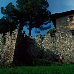 Start from the centre of Pratovecchio, cross the Arno on Ponte M. Grazia and then go immediately right (marked as footpath no. 26), walking up an asphalt road. Be on the lookout at the first sharp U-bend for an unpaved road on the right that climbs up into the wood. Following this you get onto the old road that once climbed in the direction of Scarpaccia via Case Palaia. When you come to a junction, go left and soon you reach the Case Palaia farm buildings; follow the red and white signs which take you back onto the asphalt road. Turn right, but you soon come off it again, going left and following the red and white signs taking you up a grassy hill. Make sure that on this stretch you follow the path running along by the barbed wire fence, which climbs up to a small copse of oak trees, where you meet a bigger path. Go right along this, cross the courtyard of a house and get back onto the asphalt road. Turn left along this but leave it again immediately, turning left on a slightly overgrown path that soon widens out and meets the unpaved road for the Castello di Romena. Go left along this, walking between cypress trees, and soon you are at the castle (for a guided tour, ring the keeper's doorbell). When you reach the castle entrance, go left, following the line of the walls, and descend along a mule-track till you reach a recently renovated arch-shaped construction where the waters of the Fonte Branda once emerged. Unfortunately, the spring has dried up. From here, continue downhill along the main mule-track and you soon come to a poorly-maintained asphalt road. Turn left along this and continue downhill till you hit the road which, if you turn right, goes to the Pieve di Romena. You have two options at this point: either go left along the asphalt road which quickly brings you back to the start point or go back the way you came.