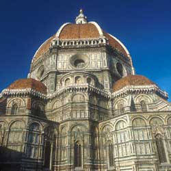 The duomo of Firenze, 153 metres long and 38 wide, is the fourth-largest Christian church.