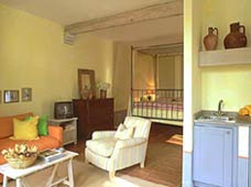 Framed by an ancient forest that embraces the completely renovated old building, Sette Querce has nine magnificent suites, each with its own entrance for privacy and freedom. Each suite also is appointed with a telephone, television, independent climate control, a kitchen/bar area and hydro-massage tub. Many of the suites have a terrace or balcony, perfect for quiet naps or breakfasting al fresco. The hotel's interior was created by the well-known Designer Guild of London, under direction of Tricia Guild and Francesco Miani.. There is ample parking.